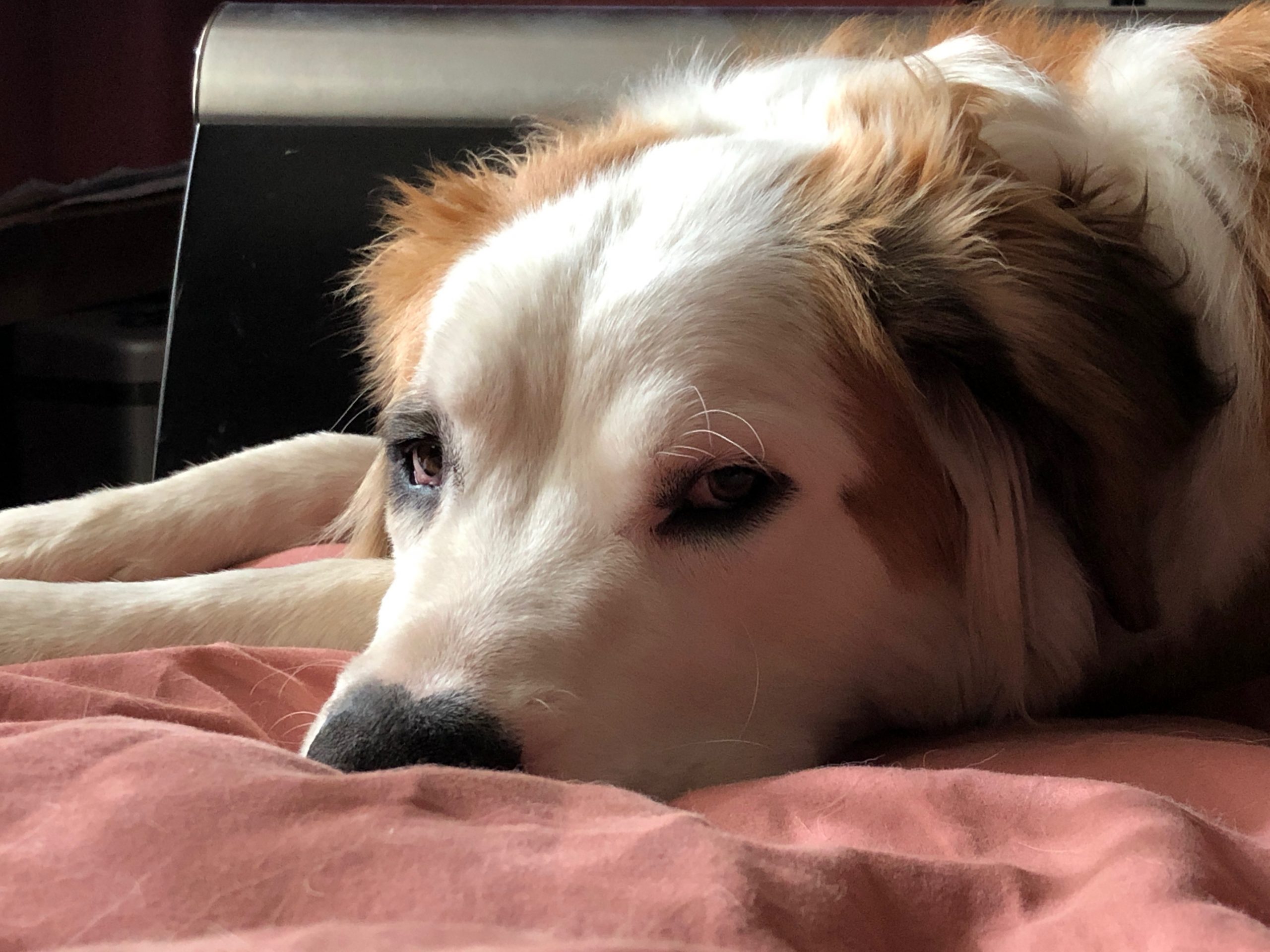 This foster human had another dog with him, too. His own dog, named Smith. She was really cool! They brought me out to the yard at the shelter where I got to meet Smith and play with her. So Smith was a lot older than me, but we still got along really well. Anytime I’d get a little too energetic for her, she’d let me know and I’d knock it off. She didn’t really like when I would herd her. Oh, yeah… so I’m part Australian Shepard 🐶 and they herd sheep 🐑 and even other dogs 🐕 . I guess it’s in something they called my DNA? But anyway, this foster human decided to bring me home with him and Smith so I could get better and hopefully find my forever home.